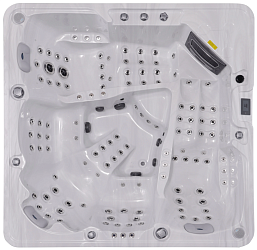 Для каждого места массажные форсунки установлены в индивидуальном порядке, благодаря чему осуществляется воздействие на разные проблемные зоны шеи, спины, икр ног. В конструкции бассейна предусмотрено 33 водных форсунки, их дополняет 10 воздушных форсунок. Силу потока воды каждый пользователь может регулировать для своего места индивидуально.